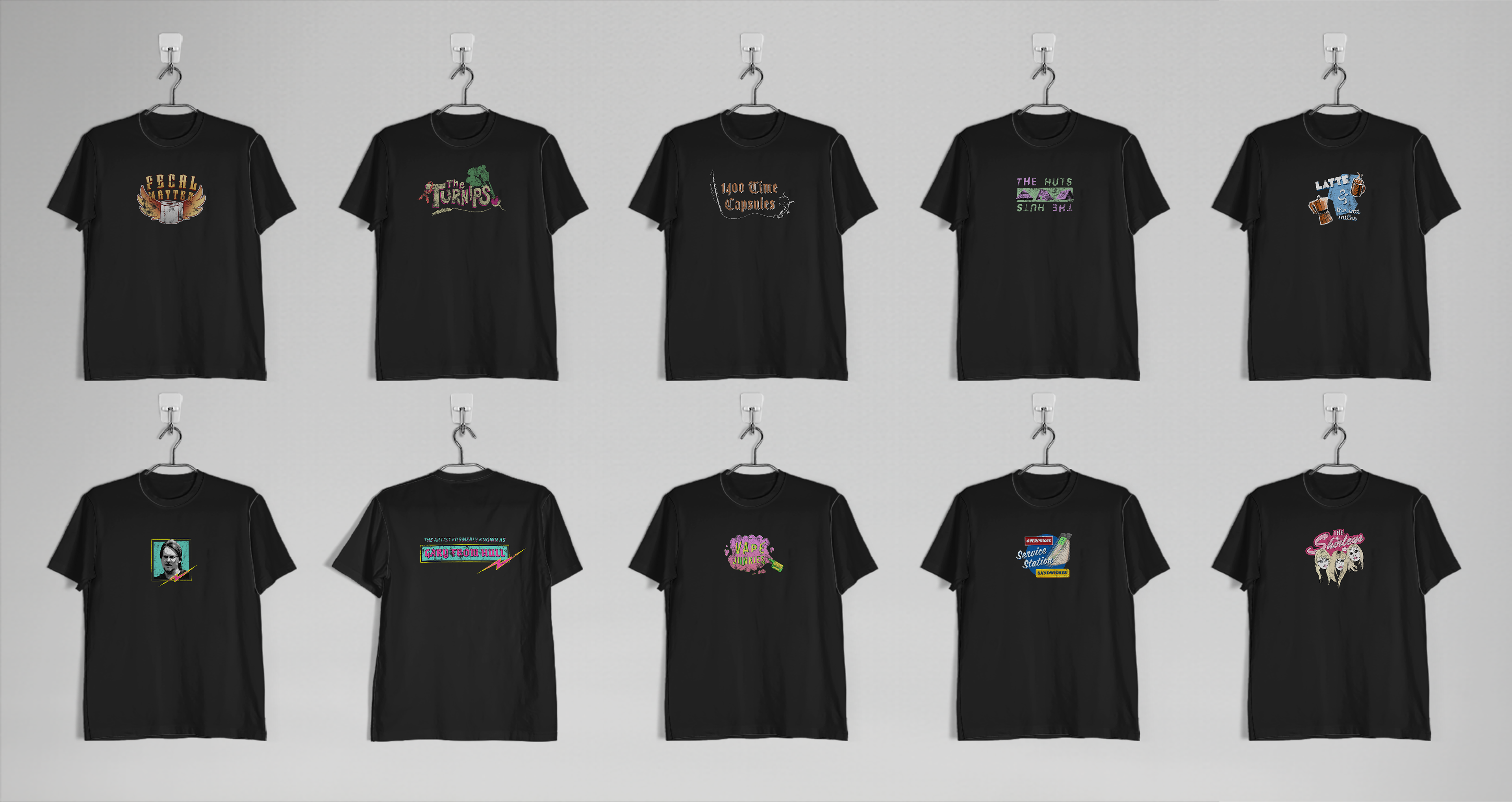 I designed 9 band tees for Daisy May Cooper to wear on the reboot of Never Mind the Buzzcocks.